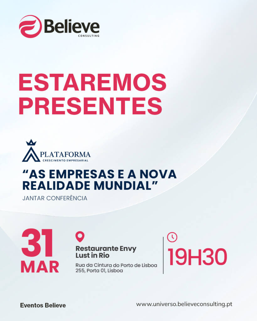 A Believe Consulting estará presente, em Lisboa, amanhã, a convite da Plataforma Crescimento Empresarial, no jantar-conferência com o tema “As empresas e a nova realidade mundial”.